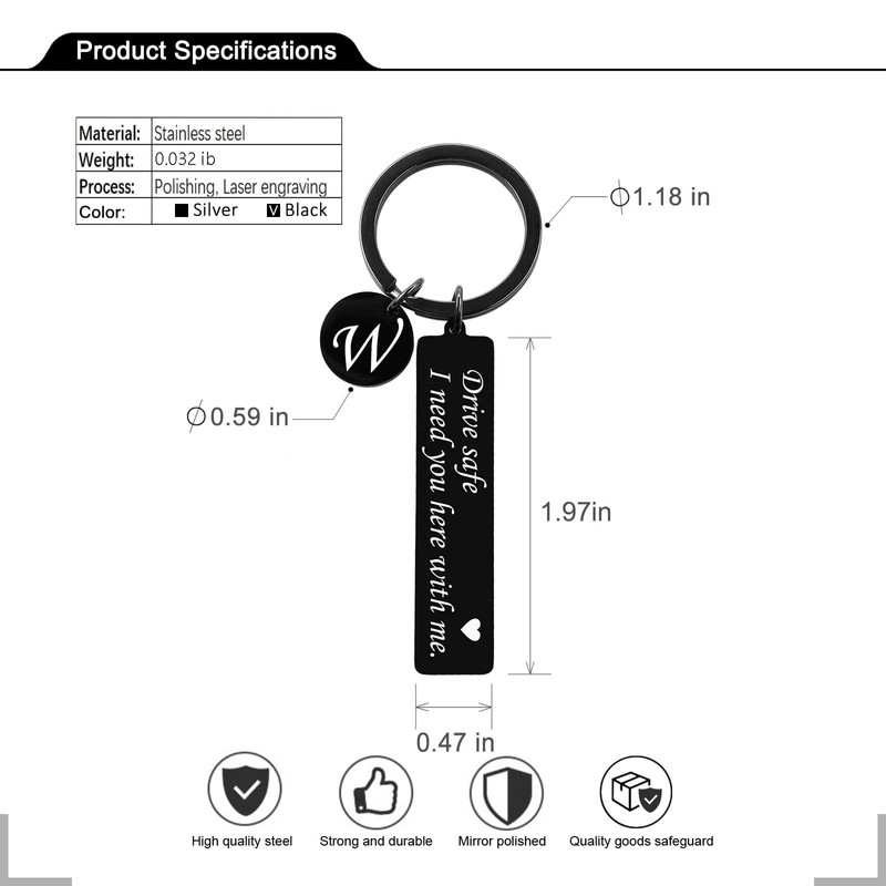 CINDYHE Drive Safe Keychain Gift for Boyfriend Valentines day I Love You Gifts for Him I Need You Here 26 Initial Letter, W-black, drive safe keychain