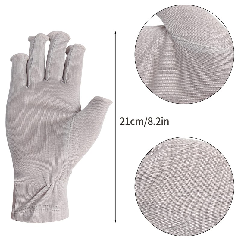 CINECE Women's Silk Gloves, Hand Care, Moisturizing, Heat Retention, Protection, Rough Skin, Sunscreen (Half Finger, Gray)