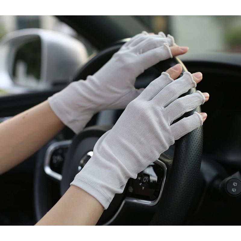 CINECE Women's Silk Gloves, Hand Care, Moisturizing, Heat Retention, Protection, Rough Skin, Sunscreen (Half Finger, Gray)