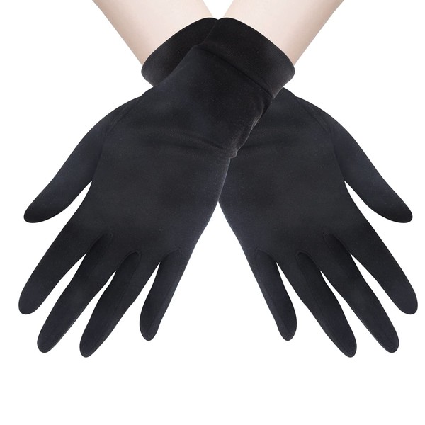 CINECE Women's Silk Gloves, Hand Care, Moisturizing, Warming, Protection, Rough Skin, Sunscreen (Black)