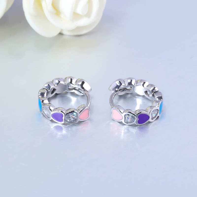 - Sterling silver plated base heart shape enamel and cubic zirconia hoop earrings, hypoallergenic for sensitive ear