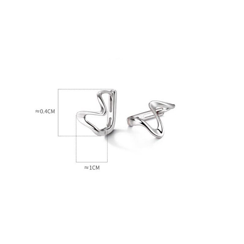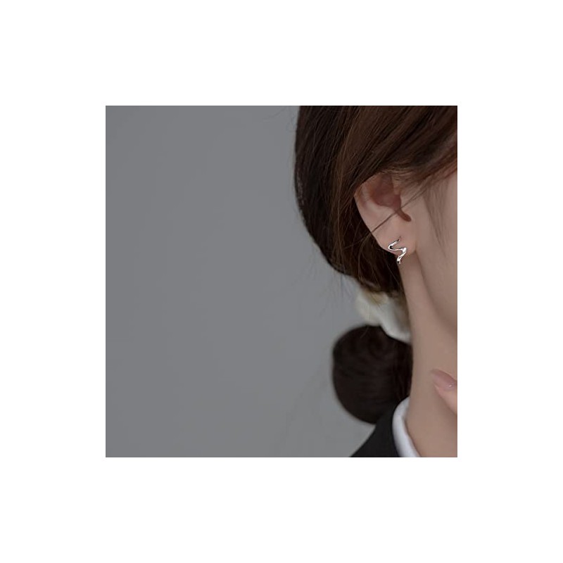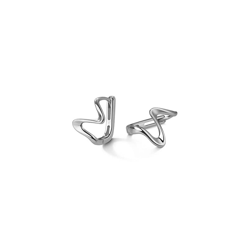 Cinlan S925 Sterling Silver Wavy Curve Hoop Cuff Earrings for Women (Silver)