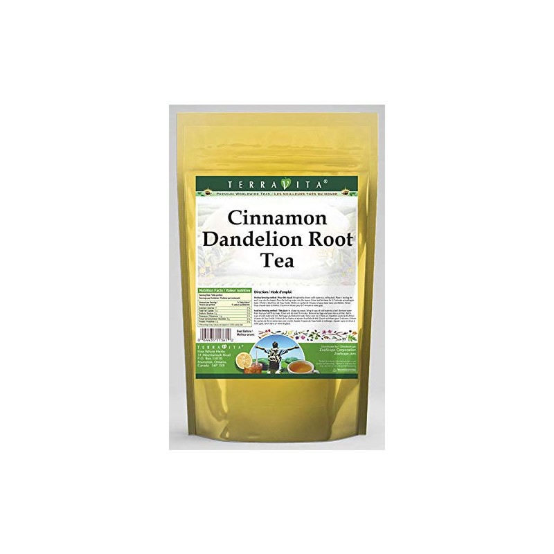 Our Cinnamon Dandelion Root tea is a delicious naturally flavored Dandelion Root coffee substitute with Cinnamon Chips that you will enjoy relaxing with anytime! The natural and caffeine-free Cinnamon taste is delicious! - Ingredients: Dandelion Root, Cinnamon Chips and Natural Cinnamon Flavor. - Hot tea brewing method: Bring freshly drawn cold water to a rolling boil. Place 1 teabag for each desired cup into the teapot. Pour the boiling water into the pot, cover and let steep for 2-4 minutes. Pour into your cup; add milk and natural sweeteners to taste. - Iced tea brewing method: (To make 1 liter/quart): Place 5 teabags into a teapot or heat resistant pitcher. Pour 1 1/4 cups of freshly boiled water over the teabags. Steep for 5 minutes. Quarter fill a serving pitcher with cold water. Pour the tea into the serving pitcher. Add ice and top up with cold water. Garnish and sweeten to taste. - TerraVita is an exclusive line of premium-quality, natural source products that use only the finest, purest and most potent ingredients found around the world. TerraVita is hallmarked by the highest possible standards of purity, potency, stability and freshness. All of our products are prepared with the highest elements of quality control, from raw materials through the entire manufacturing process, up to and including the moment that the bottles or bags are sealed for freshness and shipped out to you. Our highest possible standards are certified by independent laboratories and backed by our personal guarantee. - TerraVita exists to meet and ensure your family's health and wellness without the harmful effects or chemicals and prescription medications. We strive to make all of our products affordable and reliable and are constantly searching the market to maintain our affordability