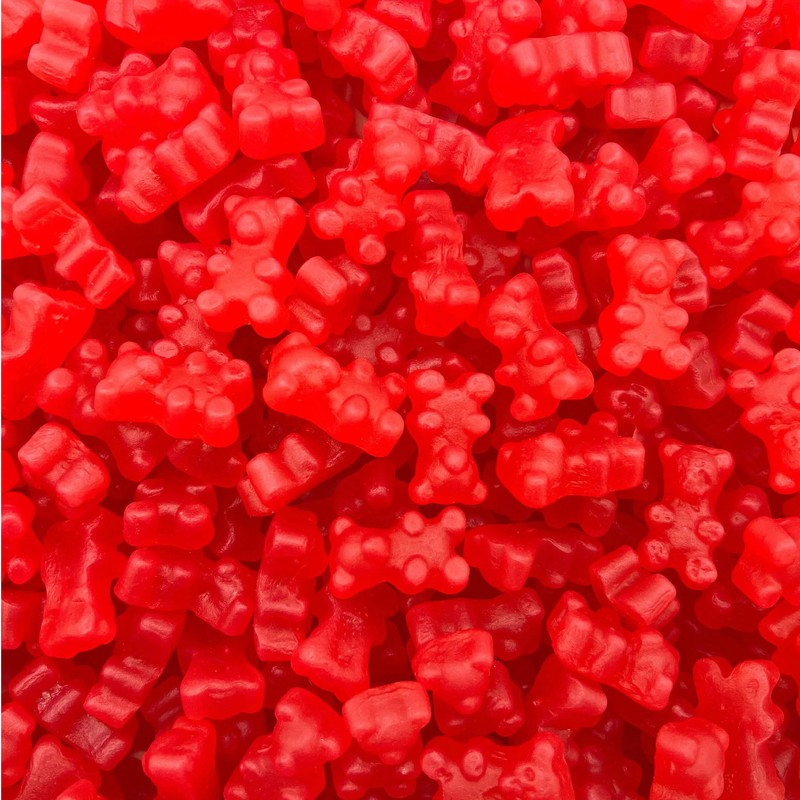- Cinnamon JuJu Bears Gummy Candy in vibrant red color; 2-pound bulk pack