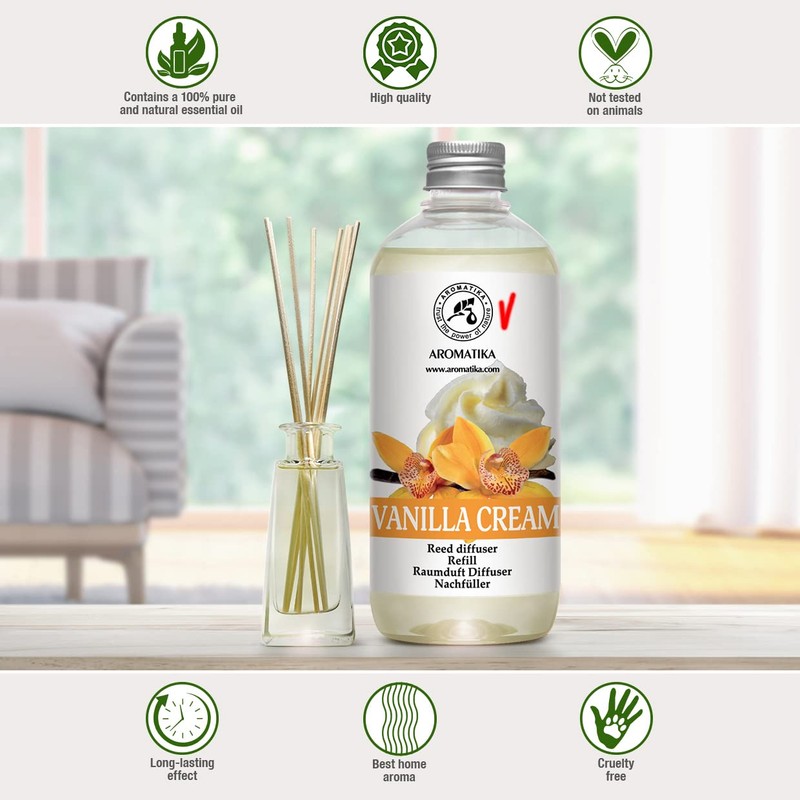 - Reed Diffuser Refill with natural Cinnamon essential oil provides long lasting fragrance. It contains 500ml diffuser refill. Just pour the refill into a clean diffuser bottle, insert sticks & enjoy.