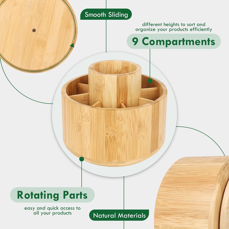 ✎ 360 degree rotation, 9 compartments with large capacity.