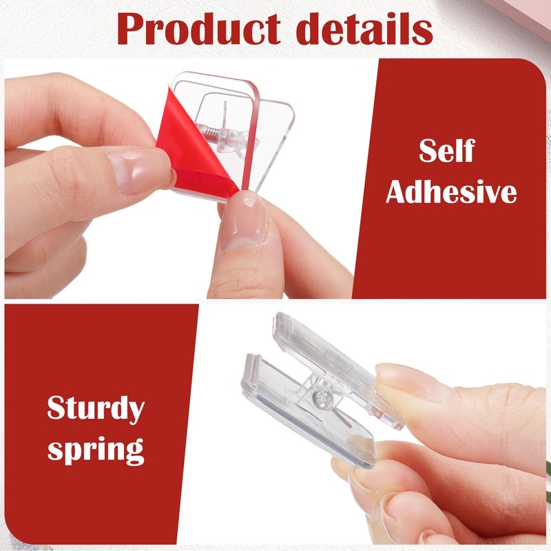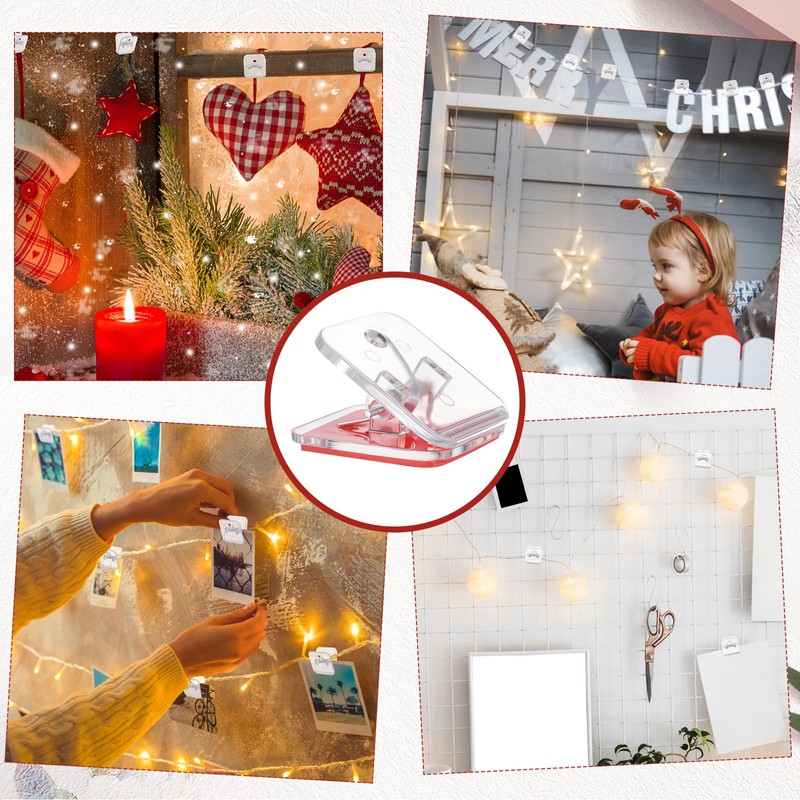 • Broad Application: highly versatile and practical, these self adhesive clips can be used for hanging photos, posters, to do lists, artworks, clipboards, music sheets, wires, and more; These are an ideal choice for home or office decoration, photo walls, Christmas tree ornaments, and can be attached to refrigerators, tables, or cabinets