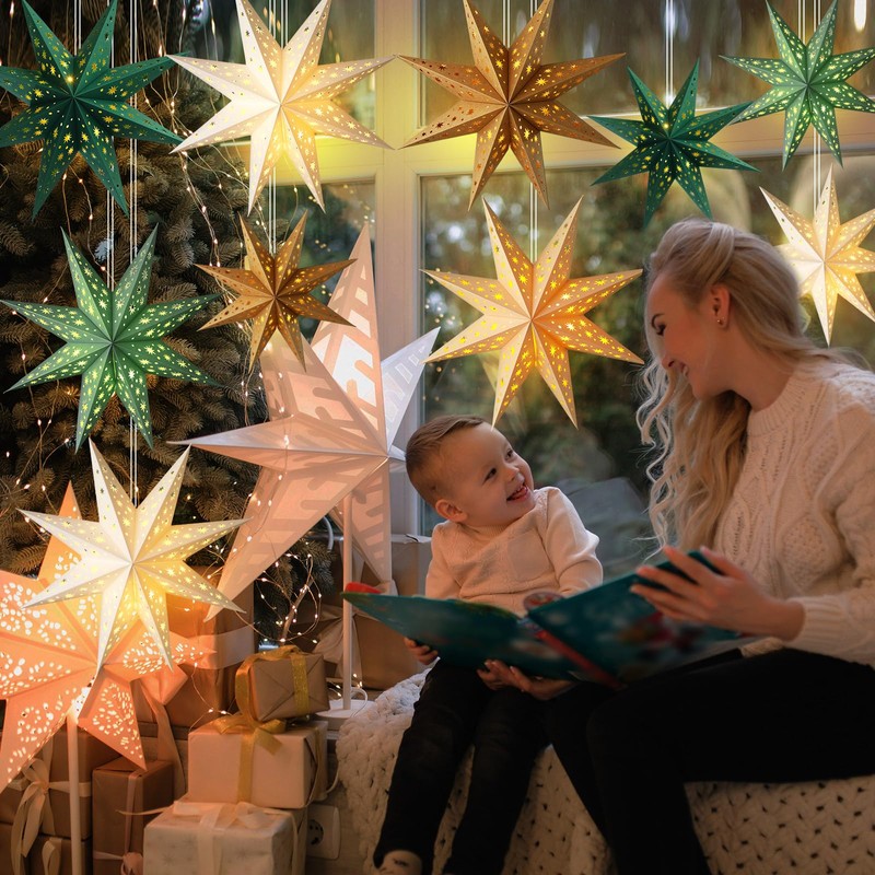 - Captivating Glow: bask in the soft, enticing aura that our paper stars emit, brilliantly illuminating your interior space, when lit, they cast delightful shadows on adjacent surfaces, concocting a cozy ambiance, strategically located in your living room, bedroom, or hallway, these stars captivate all who dares look and help spread the holiday cheer