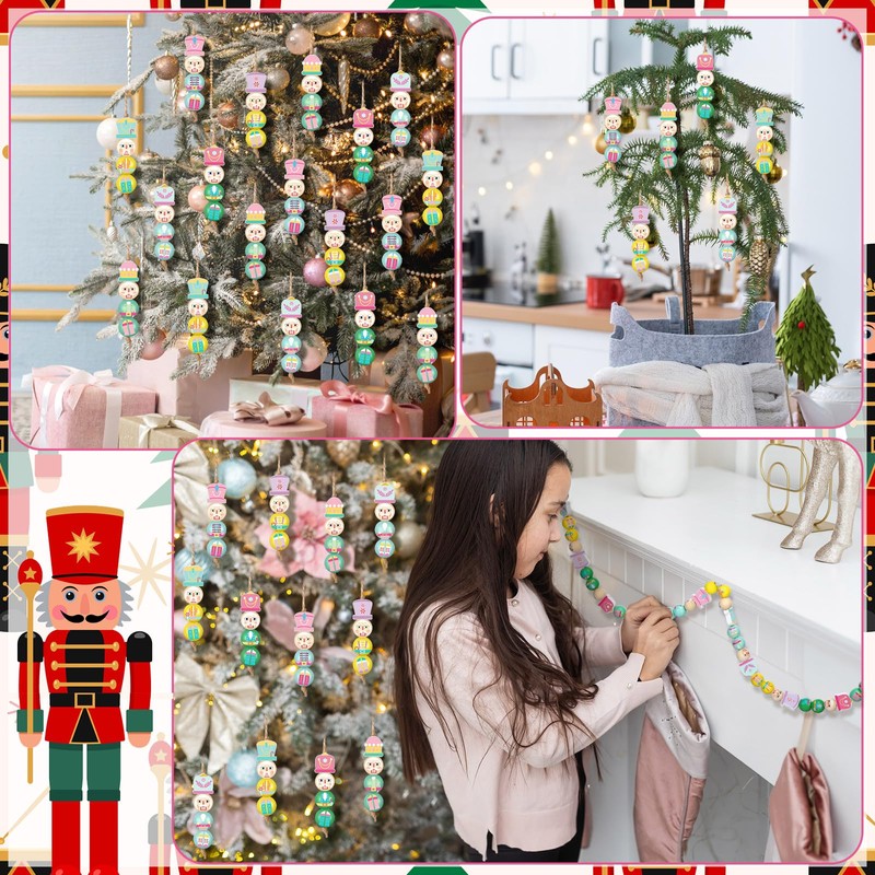 - Package Content: the nutcracker craft bead set comes with a stunning variety of 240 wooden beads with 6 styles, with 10 M/ 32.8ft rope and 1m/ 3.3ft pink white plaid ribbon, applied for all your craft needs; With 4 beads making a complete character, a single set provides up to 60 character combinations to fulfill your Christmas decoration needs and add charm to your celebrations
