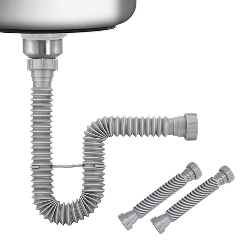 - ✔ The trap's bellows has a built-in polyethylene flexible material that can be stretched in lengths of 7.8"-25.6", allowing it to be bent and stretched at will in the narrow space of the lower sink.