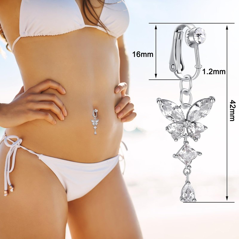 - Fashion accessories: our fake belly button piercing is designed with golden navel rings and exquisite butterfly elements and conveys a sense of fashion in simplicity. Fake belly button piercing can be combined with a variety of garments, whether casual wear or party wear, it can make you stand out from the crowd.