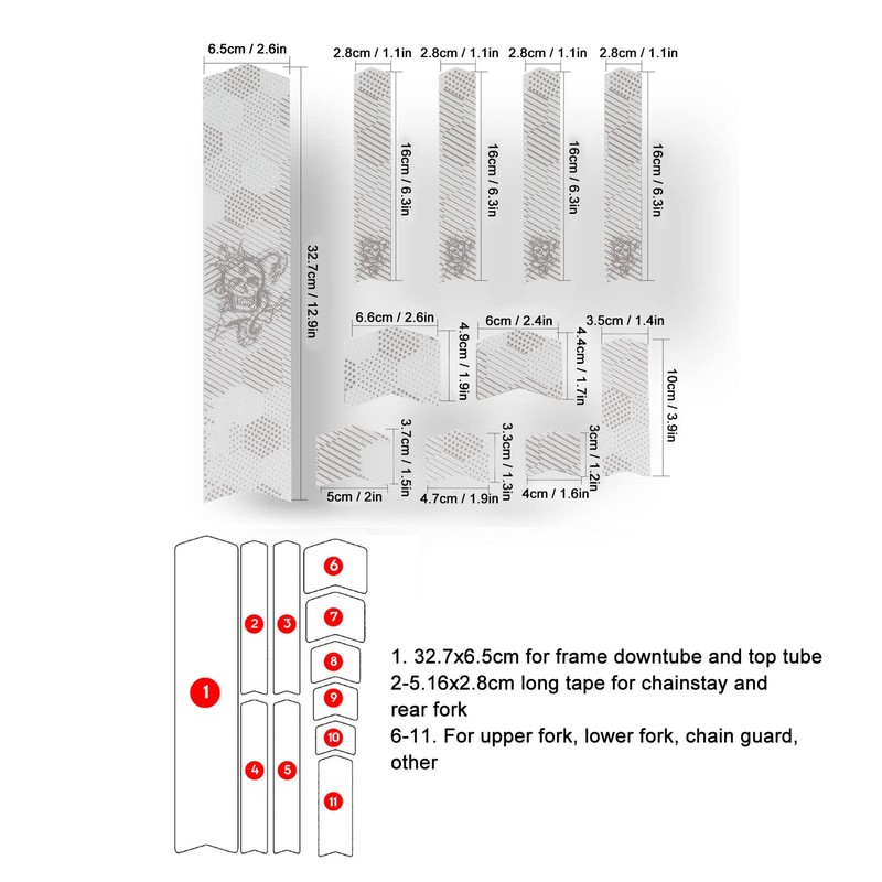 - PROTECCIÓN COMPLETA: el adhesivo protector del cuadro de la bicicleta puede resistir todo tipo de contaminación y proteger el tubo superior de la bicicleta, la vaina inferior, el tubo inferior, la horquilla delantera y otros lugares.