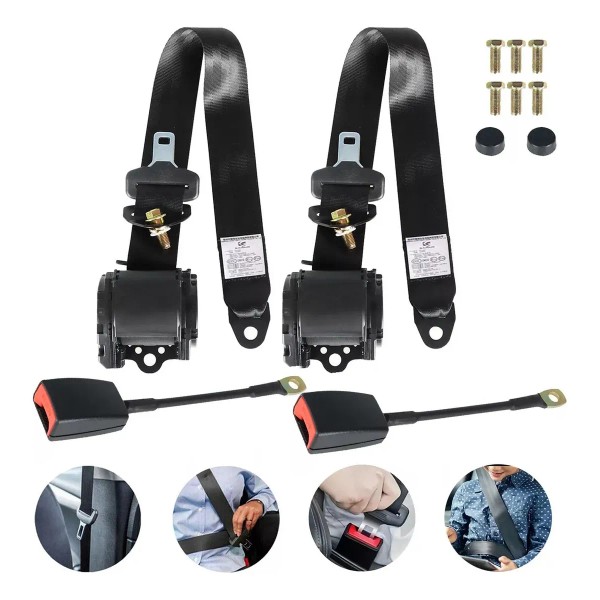 Aviso: Estos cinturones NO tienen sensor. No tiene la conexión eléctrica. Aplicaciones: Este artículo es adecuado para la posición del conductor en camiones, montacargas, autobuses, karts, automóviles, autobuses, vehículos recreativos, camiones, carritos de golf, scooters de movilidad, sillas de ruedas eléctricas, UTV, EZGO, Yamaha, Club Car. Y también funciona en el asiento trasero de RV. Para varias personas: Personas obesas, Persona con discapacidad, Niños con asiento, Mujeres embarazadas y etc. Características del producto: Cinturón de seguridad retráctil de tres puntos. Fácil de instalar y usar. Puede soltar el botón fácilmente. Hardware totalmente ajustable con leva de liberación rápida. Correas ajustables extralargas para adaptarse mejor a conductores de cualquier tamaño. Proporciona mayor seguridad en la conducción al estar firmemente asegurado en el asiento.