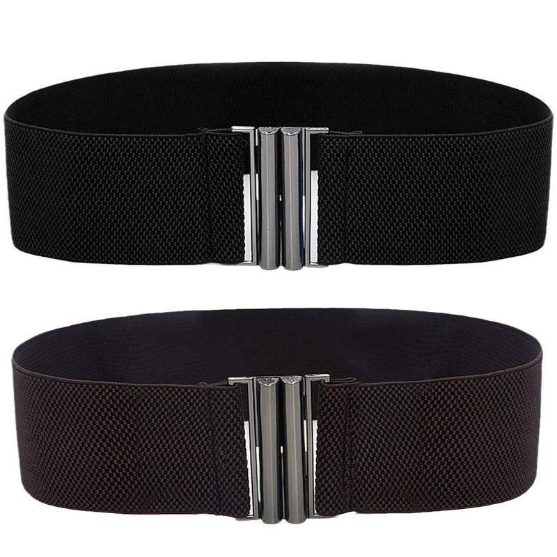 Cinturón elástico ancho y elástico para mujer, hebilla simple clásica para vestido, negro, café (Black+Coffee), L