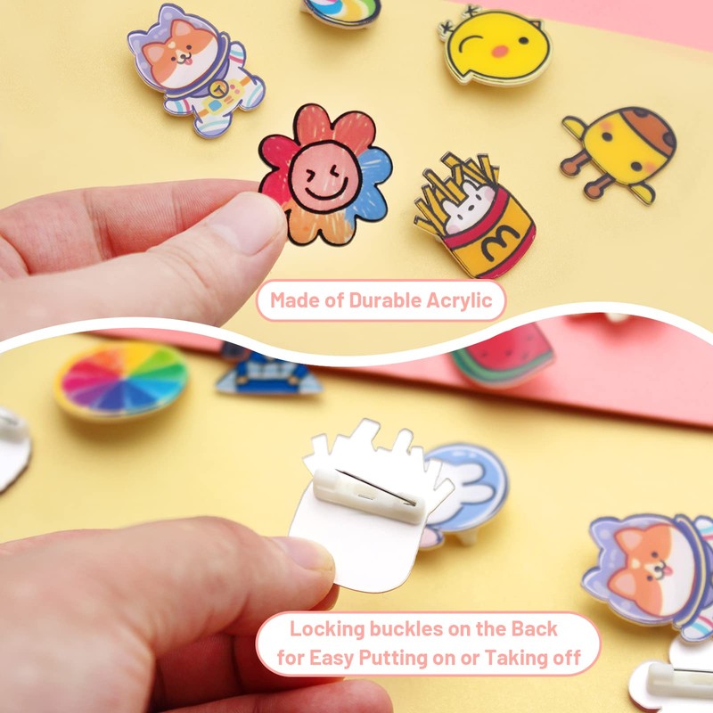 - Material acrílico: estos bonitos pines están hechos de material acrílico que es duradero y no es fácil de romper, color brillante y diseño vívido que no se desvanece durante mucho tiempo. Son ligeros y pequeños, fáciles de llevar.