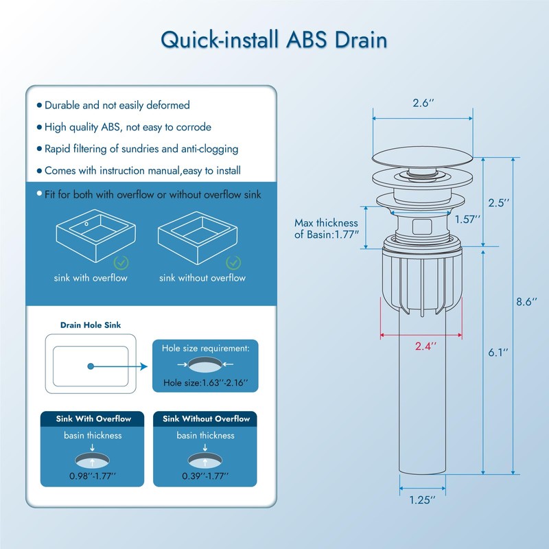 - 【What’s Included】 Faucet body, pop-up drain,a pair of Male 3/8"-Female 1/2" adapter and all installation hardware , installation instructions.