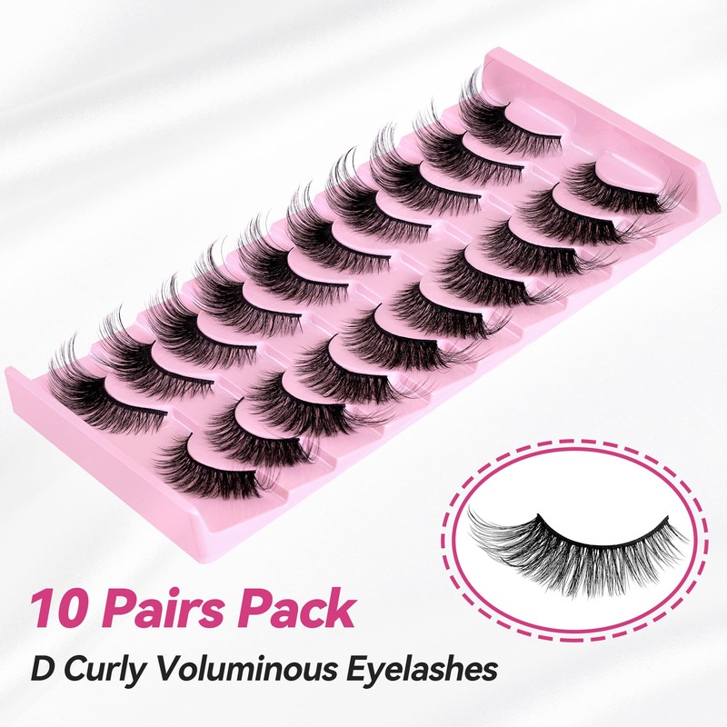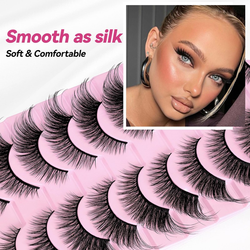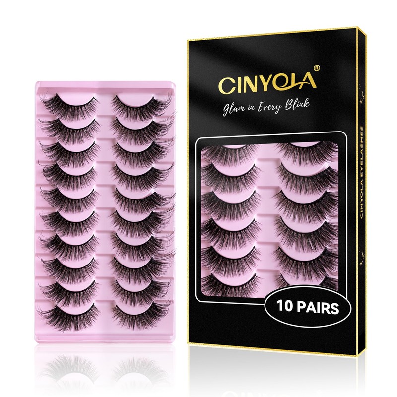 CINYOLA 10 Pairs Mink Lash Fluffy Wispy False Eyelashes, Cat Eye Lashes Extension Strips Charming Look, Volume D Curl Fake Lashes Pack