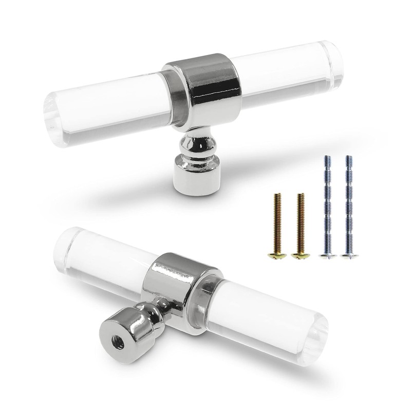 Cionyce 2 Pack Acrylic Cabinet Knobs Silver Drawers Knobs, Clear Single Hole T Bar Cabinet Pulls for Dresser Drawers Kitchen Cabinet, 3.15" Overall Length