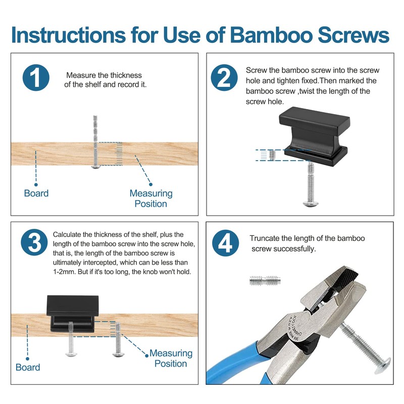 - What You Will Get: You will get 5pc dresser knobs, each knob is individually packaged to protect its beautiful appearance. At the same time, we provide two lengths of mounting screws M4x1.06" and M4x1.81", which are suitable for cabinet doors of most thicknesses.