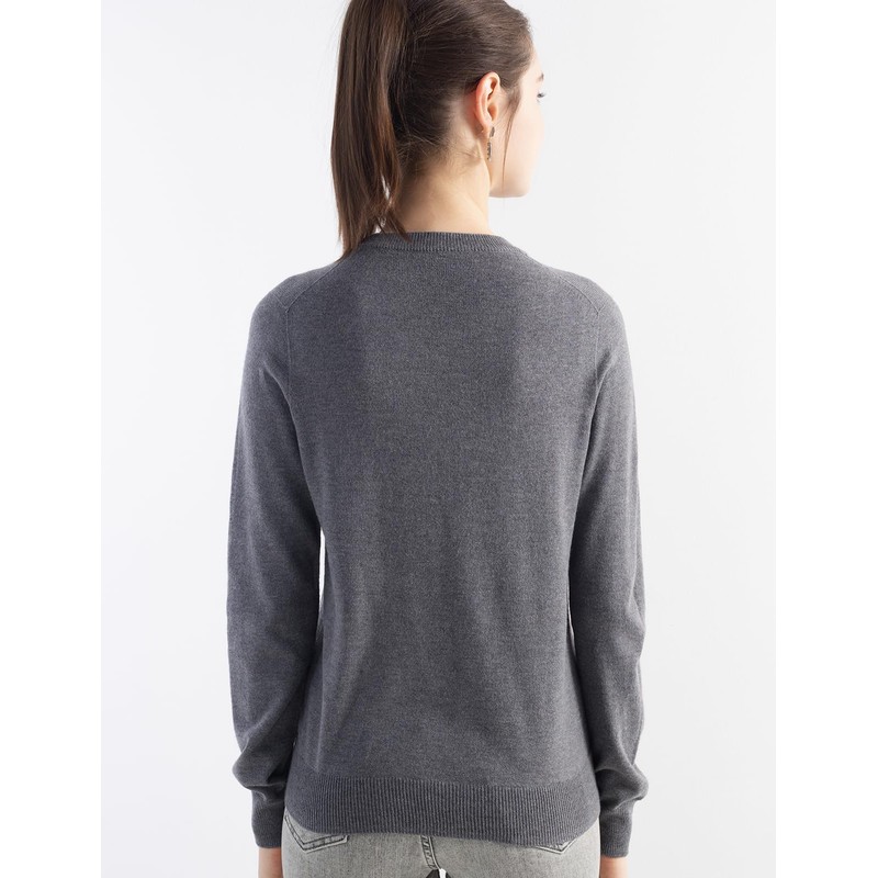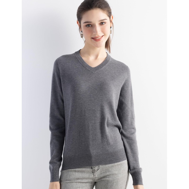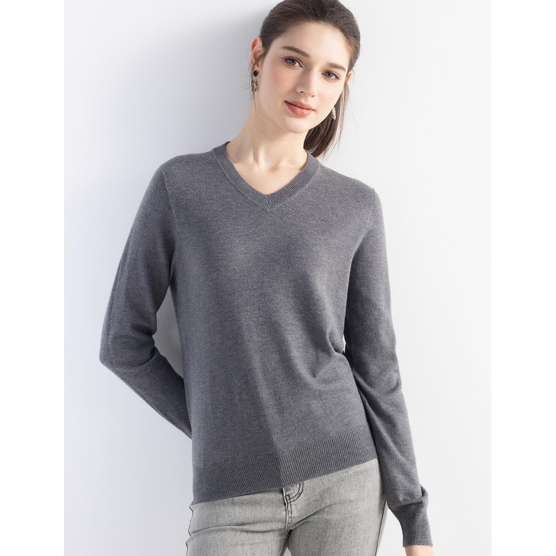 Ciovkis Women's Merino Wool Blend Sweater Fall Winter V Neck Long Sleeve First-Line Ready to Wear Seamless Knit Sweater (Grey,L)