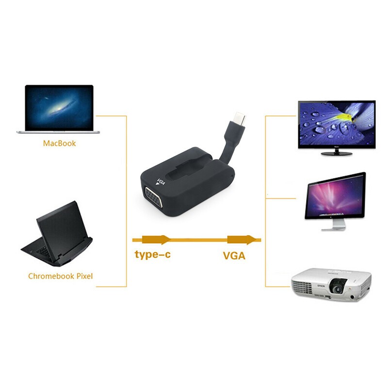 Cirago USB-C To VGA Mini Cable Adapter HD Video Converter USB 3.1 for MacBook
