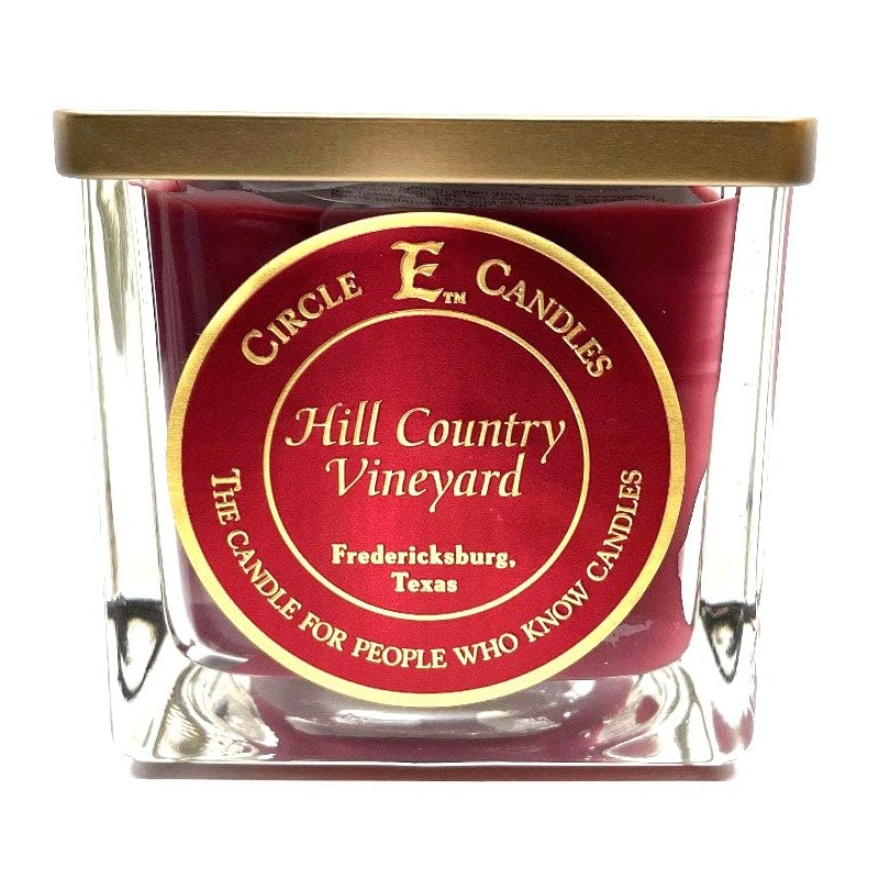 - Presented in a beautifully decorated glass holder, Circle E Candles are a simple way to achieve balance and harmony in your home by filling your room with the long-lasting scent of Hill Country Vineyards; Lush blooming vines mixed with sweet floral notes of grapes Close your eyes and enjoy the essence of a Texas Hill Country vineyard