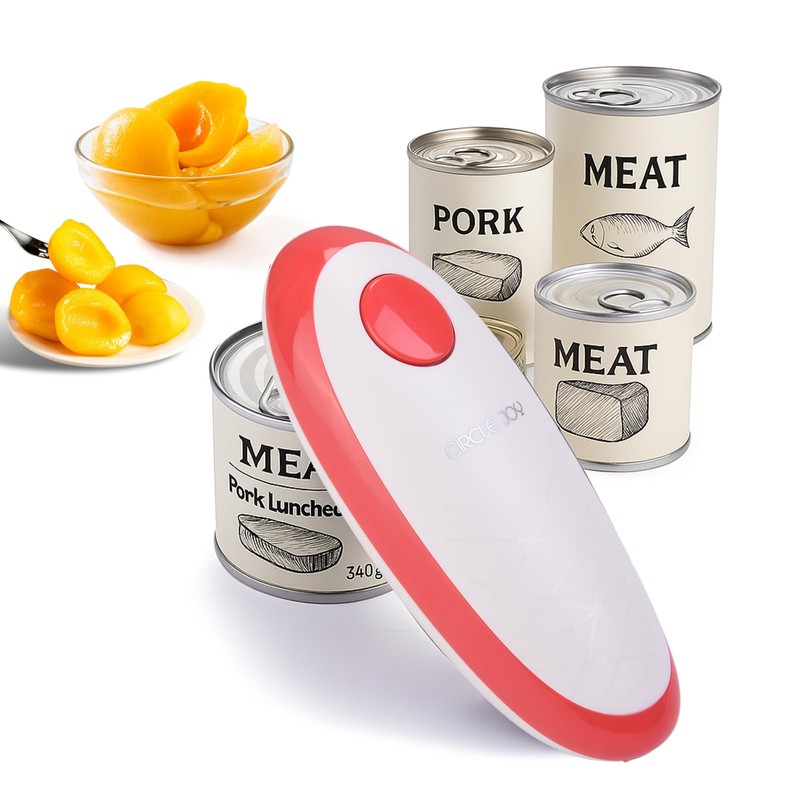 CIRCLE JOY Electric Can Opener, Can Opener Electric for Seniors with Smooth Edge, Food-Safe Automatic Can Opener Portable Battery Operated Can Openers for Almost Any Can Sizes, Red