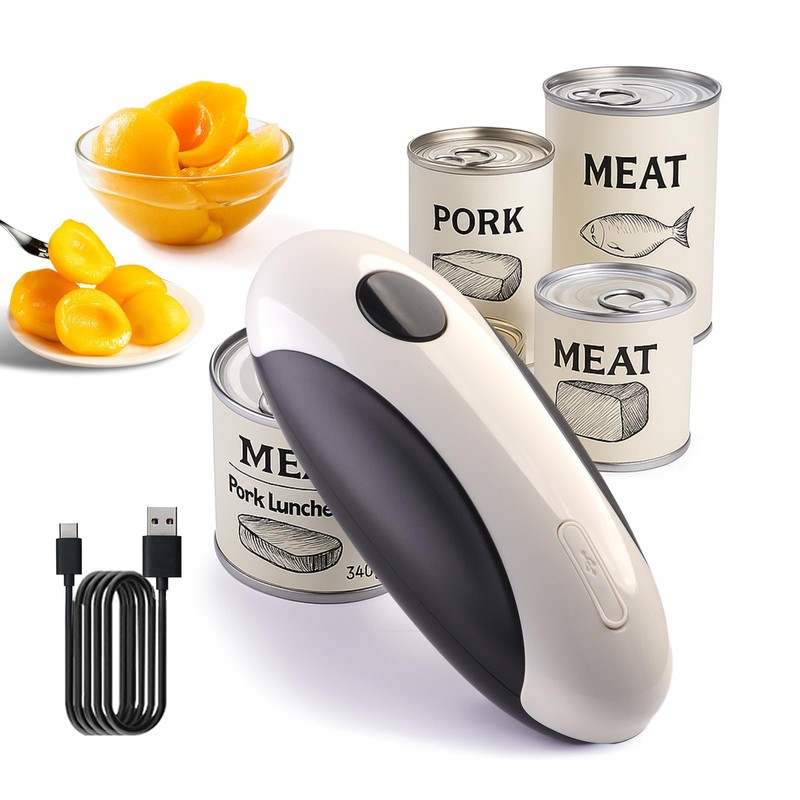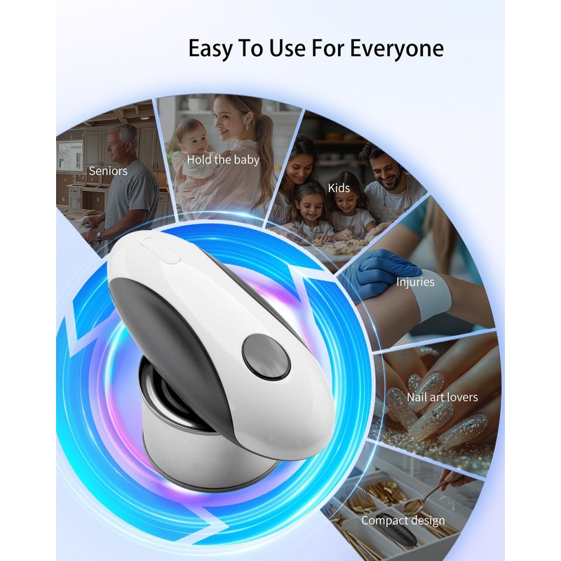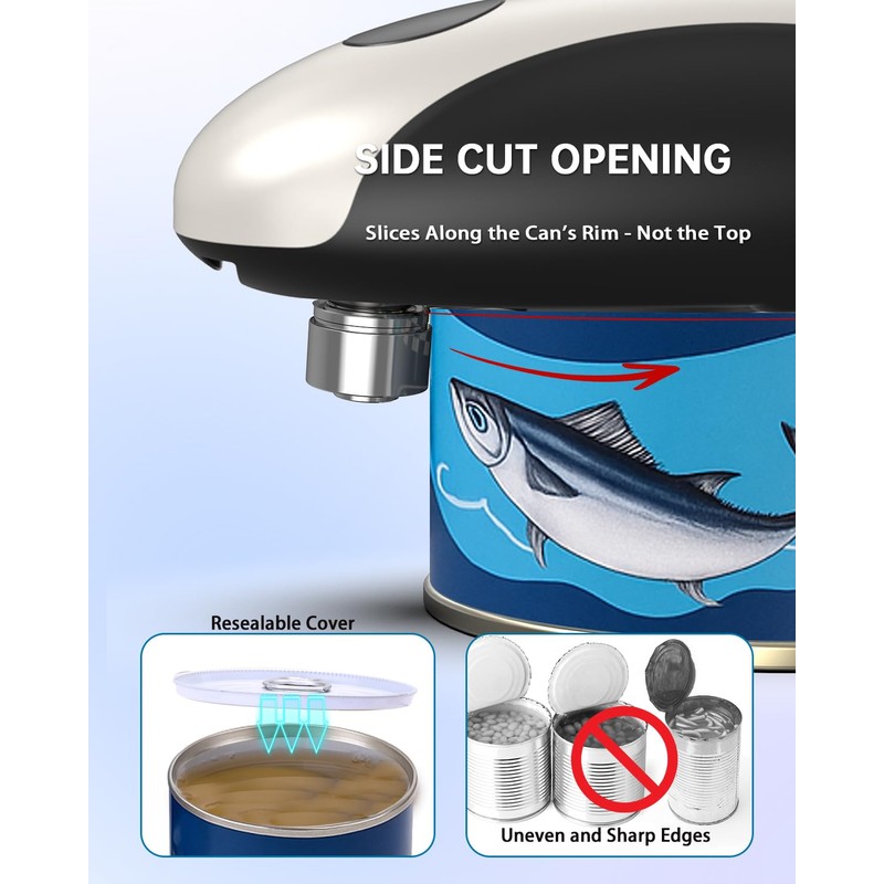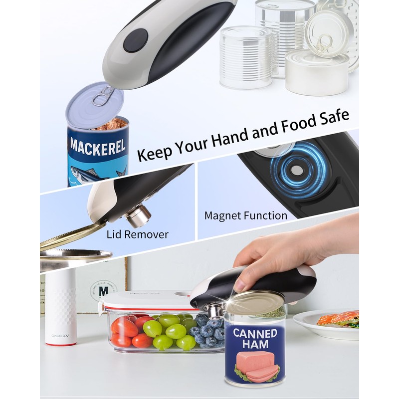 - 【Engineered for All Cans Sizes】From petite tuna cans to large tomato jars, this rechargeable can opener handles diameters of any size (square cans need ≥15mm rounded corners). The can opener electric’s side-cut tech preserves lid integrity—reattach it like a fresh seal! Note: Not for pull-tab cans or uneven rims.