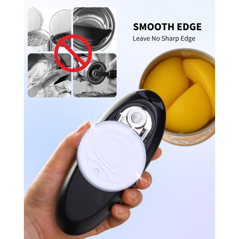 - 【ONE BUTTON AUTOMATIC OPERATION】Simply press to start! This hands-free automatic can opener automatically stops within 1-2 seconds after it finishes cutting, requiring another push of the start button. The ergonomic ABS handle fits a variety of hand sizes, and the kitchen-grade electric can opener's motor works faster than a manual can opener.
