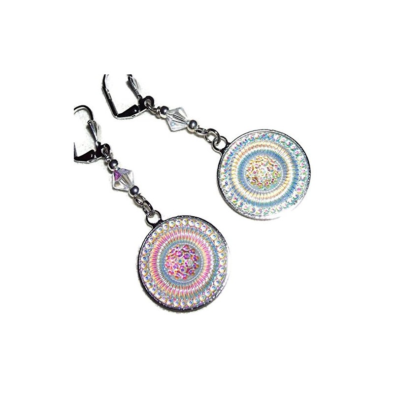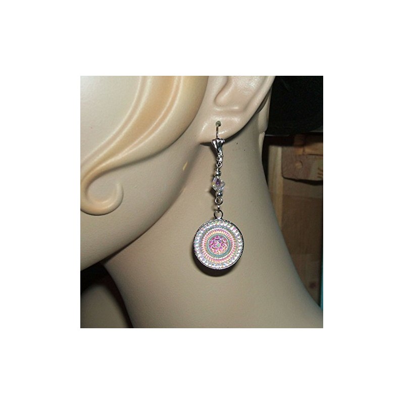 CIRCLE OF LIFE LOVE EARRINGS Color Changing Sparkling Effect Long Drop Dangles Silver Plt