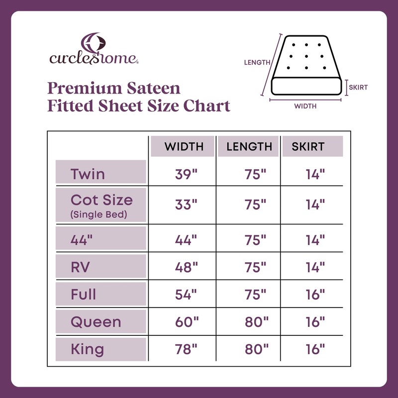 CirclesHome RV Size (48 X 75) Sateen Cotton Fitted Sheet - Ultra Soft and Comfortable Bed Linen Sheet - Protects Mattress from Dirt, Dust, and Debris - Skin Friendly and Breathable.
