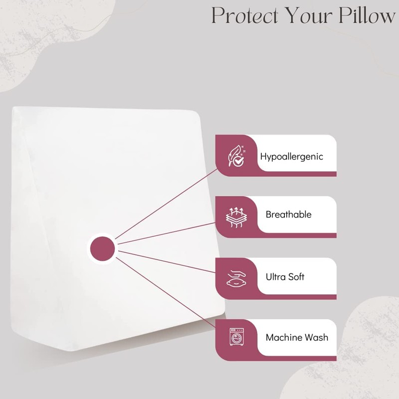 CirclesHome Wedge Pillow Cover 100% Cotton, Zippered Wedge Pillow Case Protector, Soft, Hypoallergenic & Breathable - 25x25x10x2”