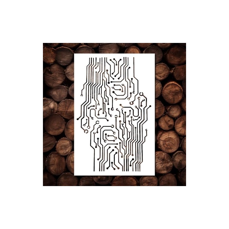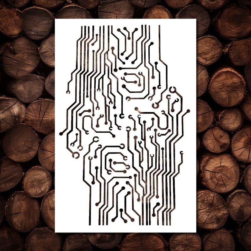 Circuit Board Stencil Template - Reusable Mixed Media Electronic Sketch Stencils for Painting on Wood, Glass, Wall Rock, Walls, Canvas, Glassware, Spray Painting, Airbrushing, Crafts (4x6.5)