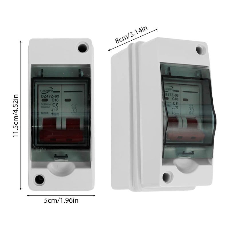 Circuit Breaker Solar DC Circuit Breaker Box 16A 500V 2 Pole Disconnect Switch IP65 Waterproof Distribution Box Miniature Circuit Breaker with Safety Protection for Solar Panel Grid System