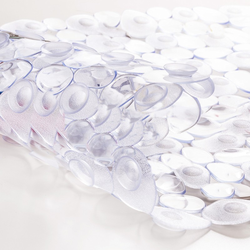 Matching your bathroom decor, you will receive a transparent stone-look mat for the bathtub in the size 70 x 35 cm. Non-slip soft plastic.