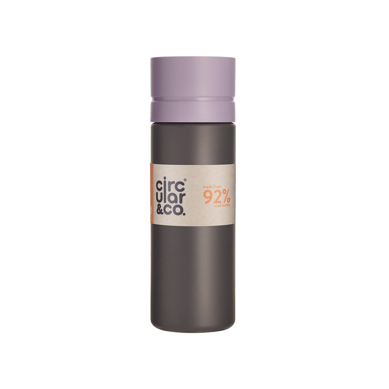 Circular and Co 600ml Leakproof Reusable Water Bottle made from 92% Single-Use Bottles (Grey Bottle & Purple Lid)