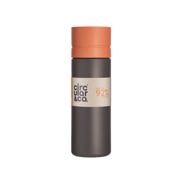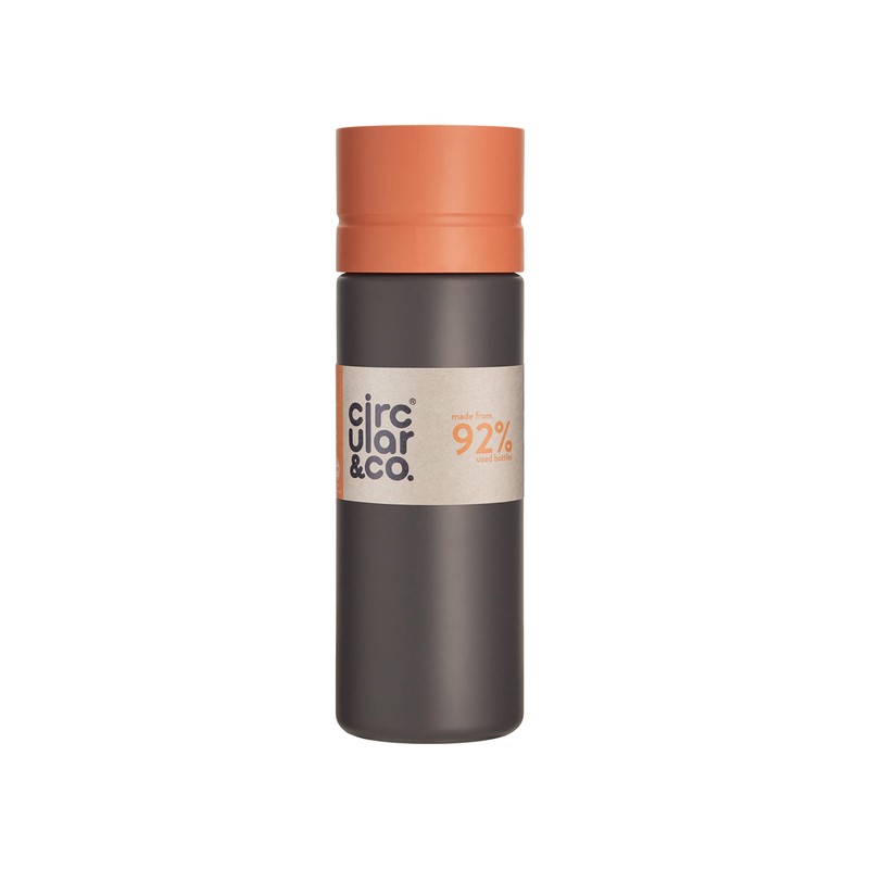 Circular and Co Leakproof 600ml Reusable Water Bottle made from 92% Single-Use Bottles (Grey Bottle & Orange Lid)