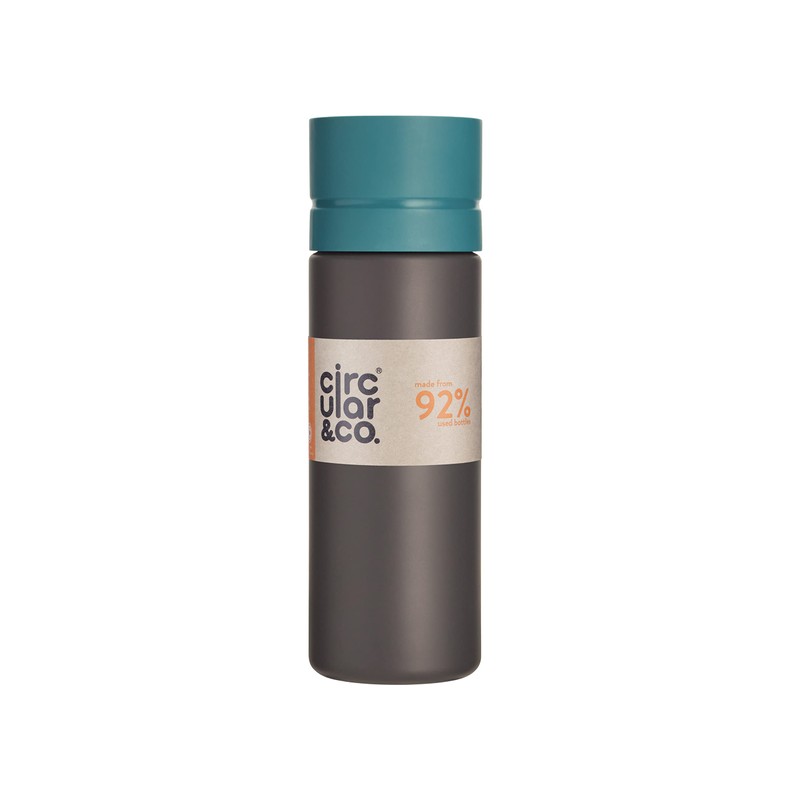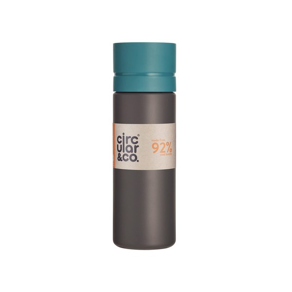 Circular and Co Leakproof 600ml Reusable Water Bottle made from 92% Single-Use Bottles (Grey Bottle & Teal Lid)