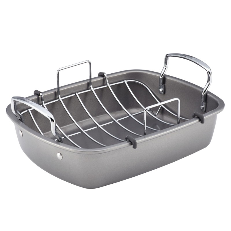 Circulon Nonstick Roasting Pan / Roaster with Rack - 17 Inch x 13 Inch, Gray