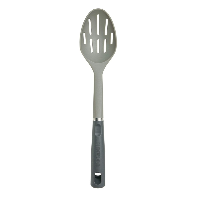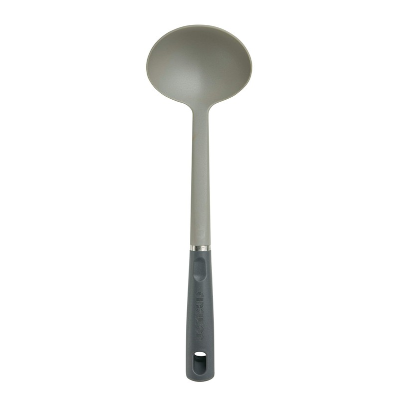 With a contemporary design in a bold, modern, Oyster Gray Color, the Circulon solutions 4-Piece nylon tool set offers all of the essential pieces for stirring, flipping, serving and straining. Use the ladle for dishing up generous portions of creamy new England Clam chowder, or grab the turner for flipping a weeknight dinner of pan-seared Blue cheese and caramelized onion burgers. Crafted from durable stainless steel and heat-resistant nylon, the tools are ideal for all cookware, bakeware and serveware, and won't scrape or scratch nonstick surfaces. Equip the kitchen with all of the essential tools for cooking, mixing, and serving with the Circulon solutions 4-Piece nylon tool set.