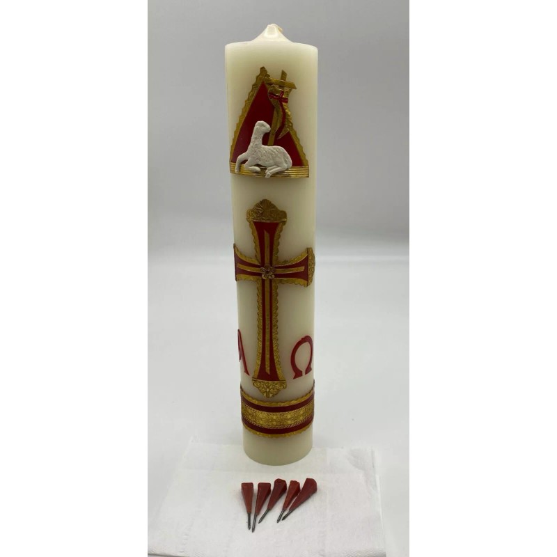 Cirio Paschal Candle Easter Lent Holy Cirio Pascual Cross Alpha Omega 15"x3"