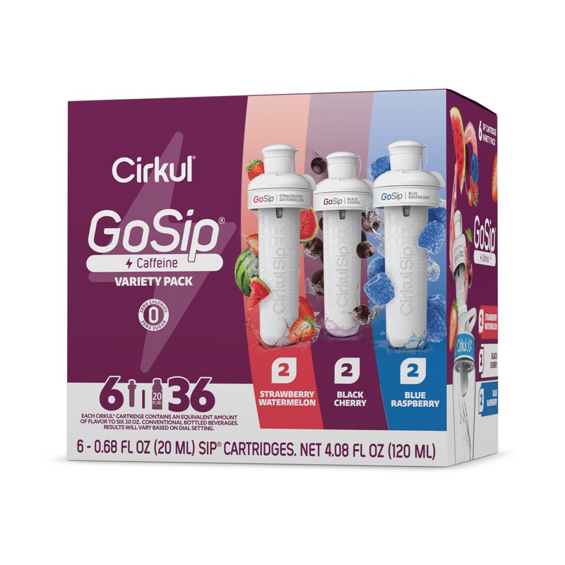 Cirkul GoSip Flavor Cartridge Variety Pack with Caffeine, 6-Pack (2 Blue Raspberry, 2 Black Cherry, 2 Strawberry Watermelon)