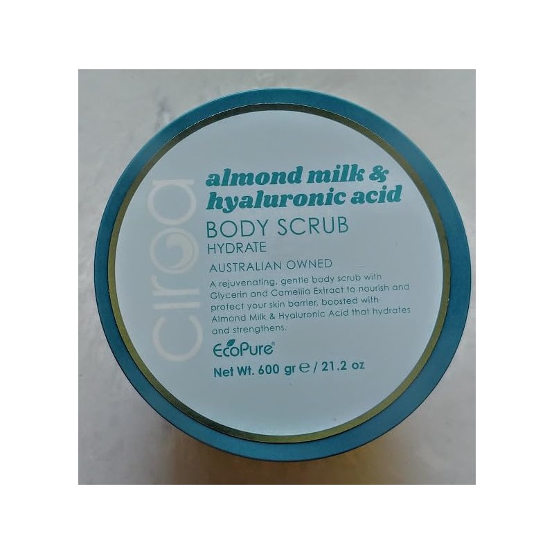 Ciroa, Almond Milk & Hyaluronic Acid, BODY SCRUB, Hydrate, 21.2 oz (600gr) Pack of One