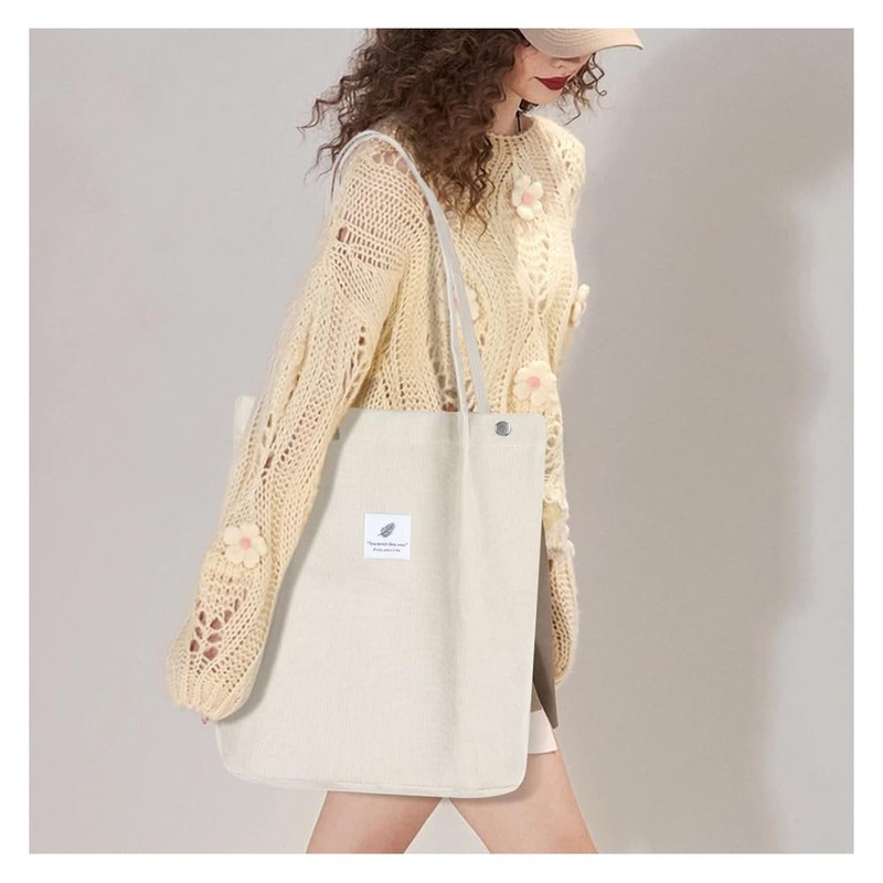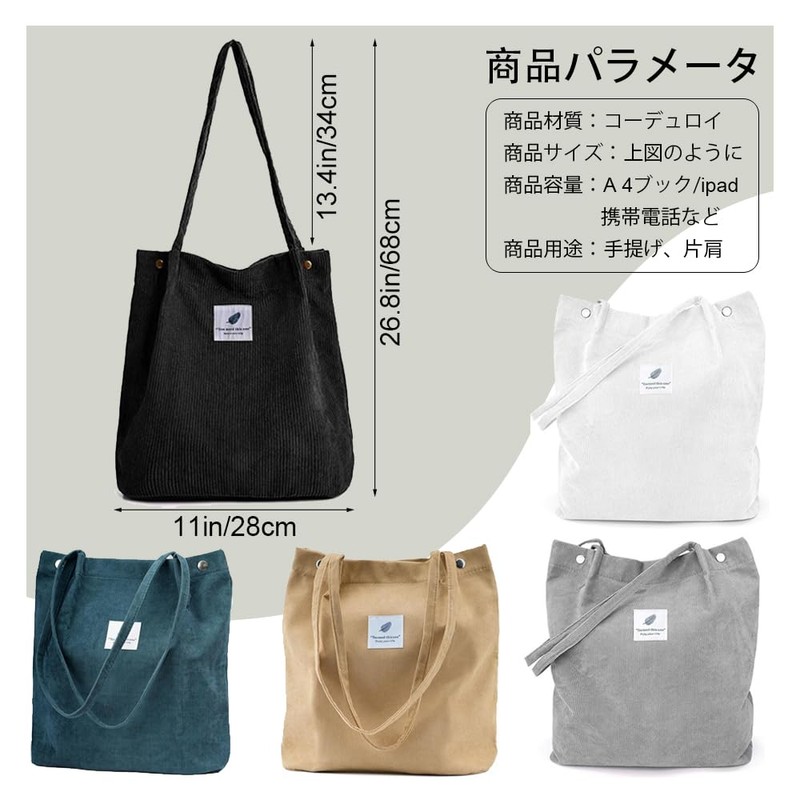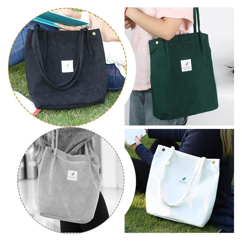 - This tote bag is made of corduroy material that gives a gentle and soft impression. Work or school