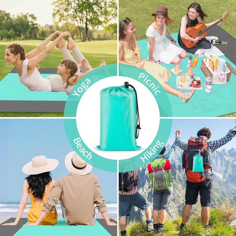 - Picnic blankets. Water and sand-repellent: picnic blanket offers optimal protection against water and sand thanks to the innovative wrinkle-free 210T polyester material, this beach blanket sand-free ensures a dry and clean experience. Picnic blanket waterproof for beach visits, picnics and all outdoor activities where you and your loved ones want to relax undisturbed.