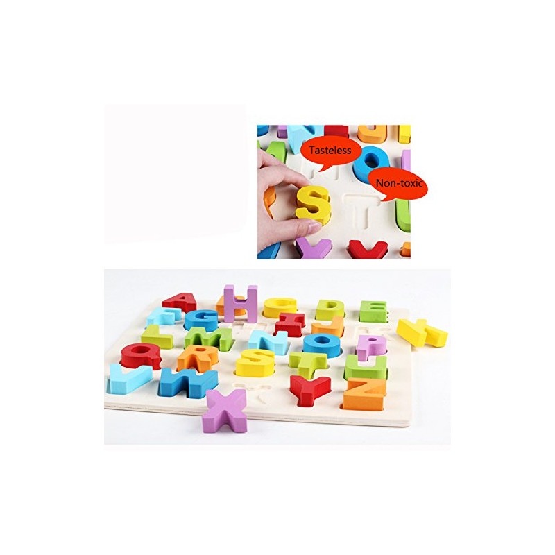 Cisixin Wooden Puzzle ABC Letters Wooden Toy, Best Wooden Toy for Playful Learning of the Alphabet Motor Skills Toy from 2 Years Tile Game Gift for Children