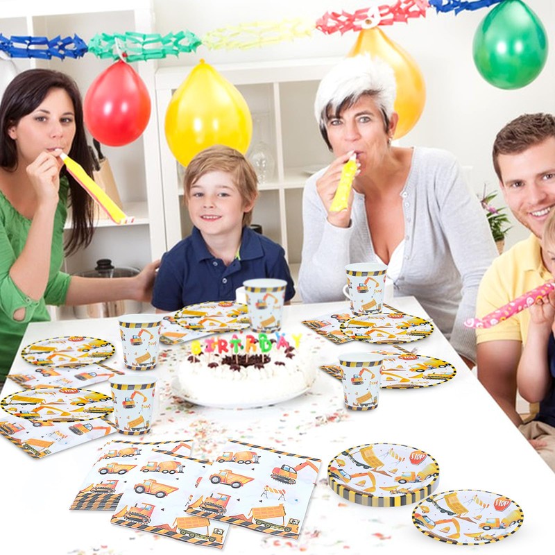 - 🚚 Digger Theme Design: Add vibrancy to any occasion with our attractive excavator graphic tableware set, perfect for birthday themed parties.