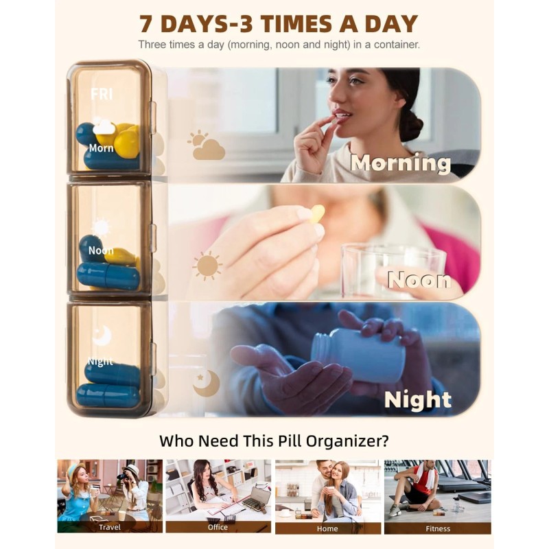 Cisrgo Pill Organizer 3X a Day, Large 7 Day Pill Organizer 3 Times a Day, Weekly Pil...