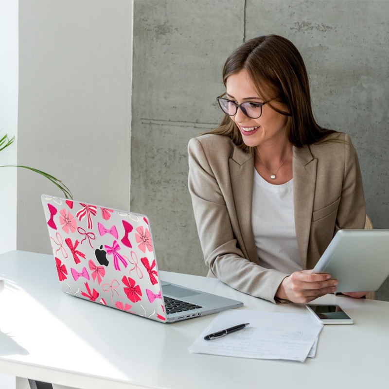 CISSOOK Compatible with MacBook Pro 14 inch 2024 2023 2022 2021 Release M4 M3 M2 M1 Chip A3112 A3185 A3401 A2918 A2992 A2779 A2442 Model, Hard Shell Case with Keyboard Cover&Screen Protector, Pink Bow