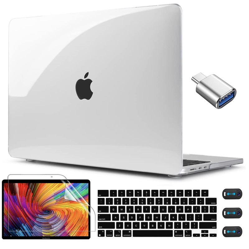 - ●[5in1 Bundle Package includes:] 1 x 2022-2024 mac book air 13.6 m2 m3 case + 1 x us layout keyboard cover +1 x 13.6inch screen protector +1 x Type-c to USB 3.0 adapter(USB C Male to USB Female Adapter) + 1 x set webcam camera cover.Both the case and keyboard cover Protecting your MacBook against scrapes and scratches,spills (coffee/beer/milk), dust (crumbs/powder) and more.